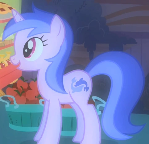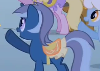 Vista da dietro in molte scene nella folla durante la prima stagione. Appare mentre canta in The Super Speedy Cider Squeezy 6000. Appare nuovamente vista da dietro nella folla in Duello magico. Condivide il design con Minuette e Sea Swirl, e ha lo stesso colore del manto e della criniera di Cheerilee. |