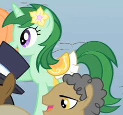 Appare come trombettiere insieme a Amethyst Star, Minuette, Sea Swirl, Twinkleshine, ed altri pony durante Un Matrimonio a Canterlot - Parte 2. Assomiglia a Lemon Hearts. Due immagini promozionali dalla pagina Facebook di The Hub la mostrano più chiaramente rispetto all’immagine presa dallo show. |