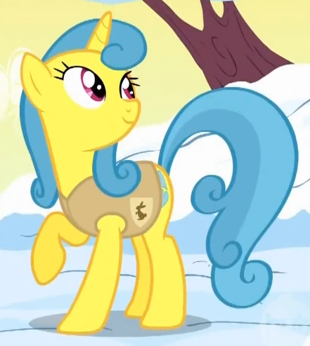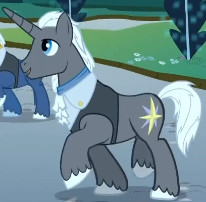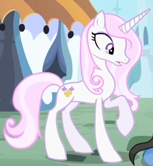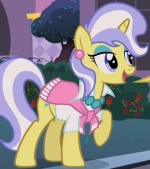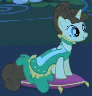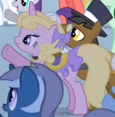 Il pony unicorno che Pinkie Pie prova a far ballare in Una Serata Indimenticabile. Appare anche in Dolce Come la Crema, Un Matrimonio a Canterlot - Parte 1, Un Matrimonio a Canterlot - Parte 2 e L'ingrediente magico: l'amicizia. Ha lo stesso design del personaggio e del vestito di un altro ospite del Gran Galà Galoppante, Gold Slipper". |
