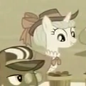 Appare fra gli spettatori della prima sfilata di moda di Fluttershy in Questione di Invidia e fra la folla in The Super Speedy Cider Squeezy 6000. Condivide la stessa tavolozza dei colori con Noteworthy. | |||