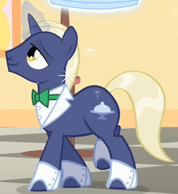 Un cameriere che serve del caffè a Rarity all'inizio di Dolce Come la Crema, serve poi egli snacks durante la canzone Diventare una VIP (Il Pony che Ogni Pony Incontrare Vorrà) e durante la festa in giardino. Il suo cutie mark è una tazza da tè rosa. |